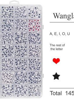 • Sale! 1450Pcs Letter Beads, Acrylic 4x7mm Round Alphabet A-Z and Red Heart Black Star Beads for Bracelets Necklaces DIY Jewelry Making (White)