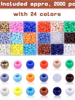 • Greentime Pony Beads Bracelets Making Kit, 9mm Pony Beads Rainbow Opaque Beads Small Loose Spacer Beads for Friendship Bracelet Necklace Making Crafts for Independence Day Gift (24colors)