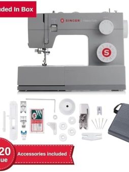 • SINGER Heavy Duty 4452 High Speed Sewing Machine With Accessory Kit | Strong Motor with Enhanced Piercing Power, 110 Stitch Applications, Full Metal frame, 1-step Buttonhole & LED Lights